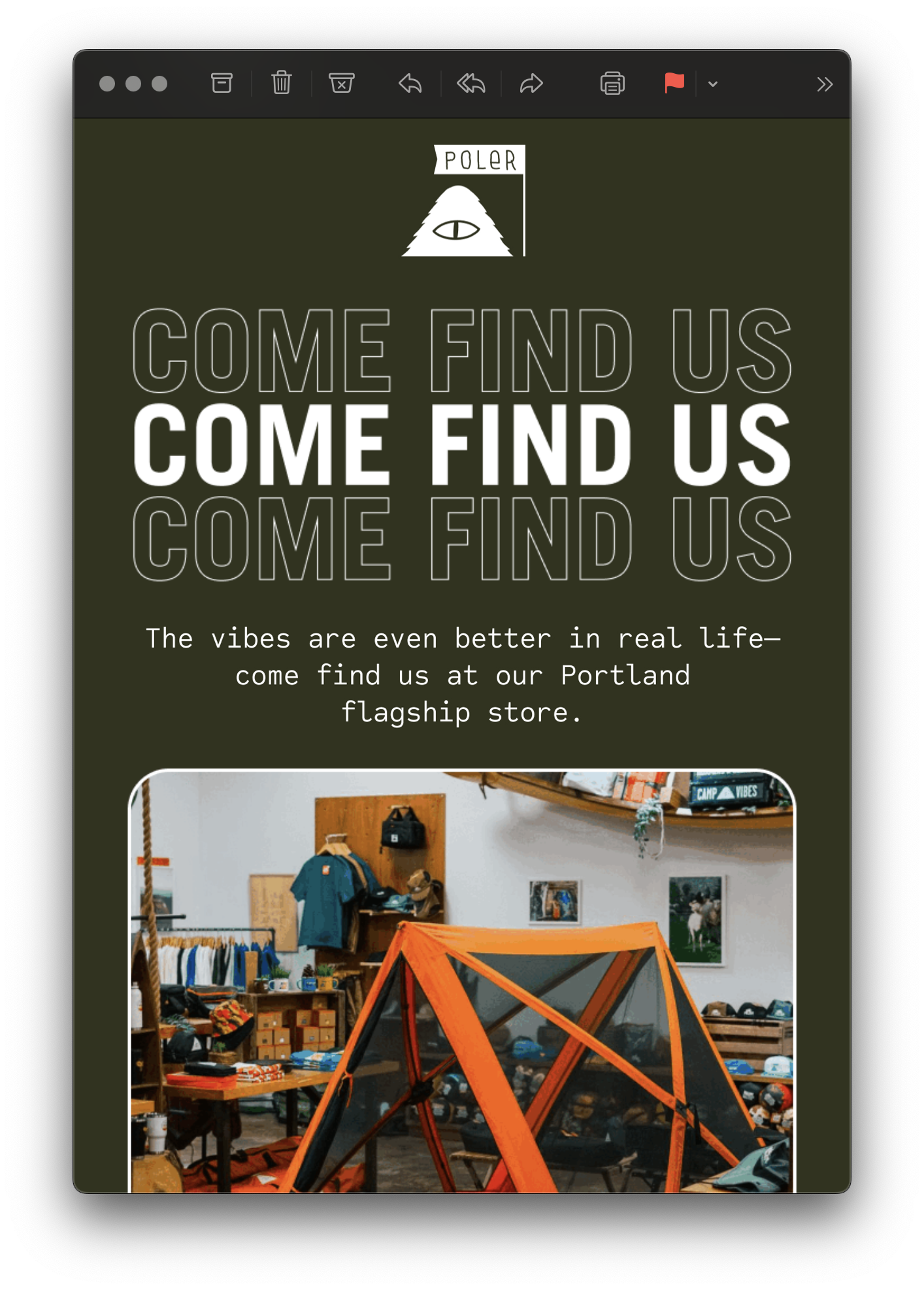 ︎︎︎Automation flows and weekly campaigns for Poler Stuff at antidote.email.